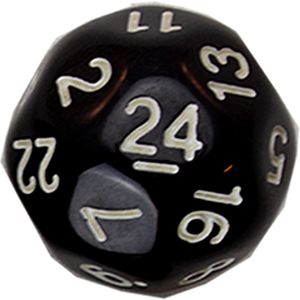 Es ist wirklich erschreckend auf welche Ideen Spieler im Laufe eines Abends so kommen können. Erst kürzlich hat einer unserer Gäste - der „Mächtige Sparklefinger" - den Vorschlag unterbreitet, dass wir 2xW12 durch einen W24 ersetzen sollten. Damit erspart man sich das Zusammen-rechnen der beiden Würfe. Gute Idee - aber schon mal versucht einen W24, im passenden Design zu euren anderen Würfeln, zu bekommen? Die Idee mit dem W24 erschien uns derart absurd, dass wir sie hier gleich offiziell zu Grabe tragen. Was denkt Ihr über diese Idee?